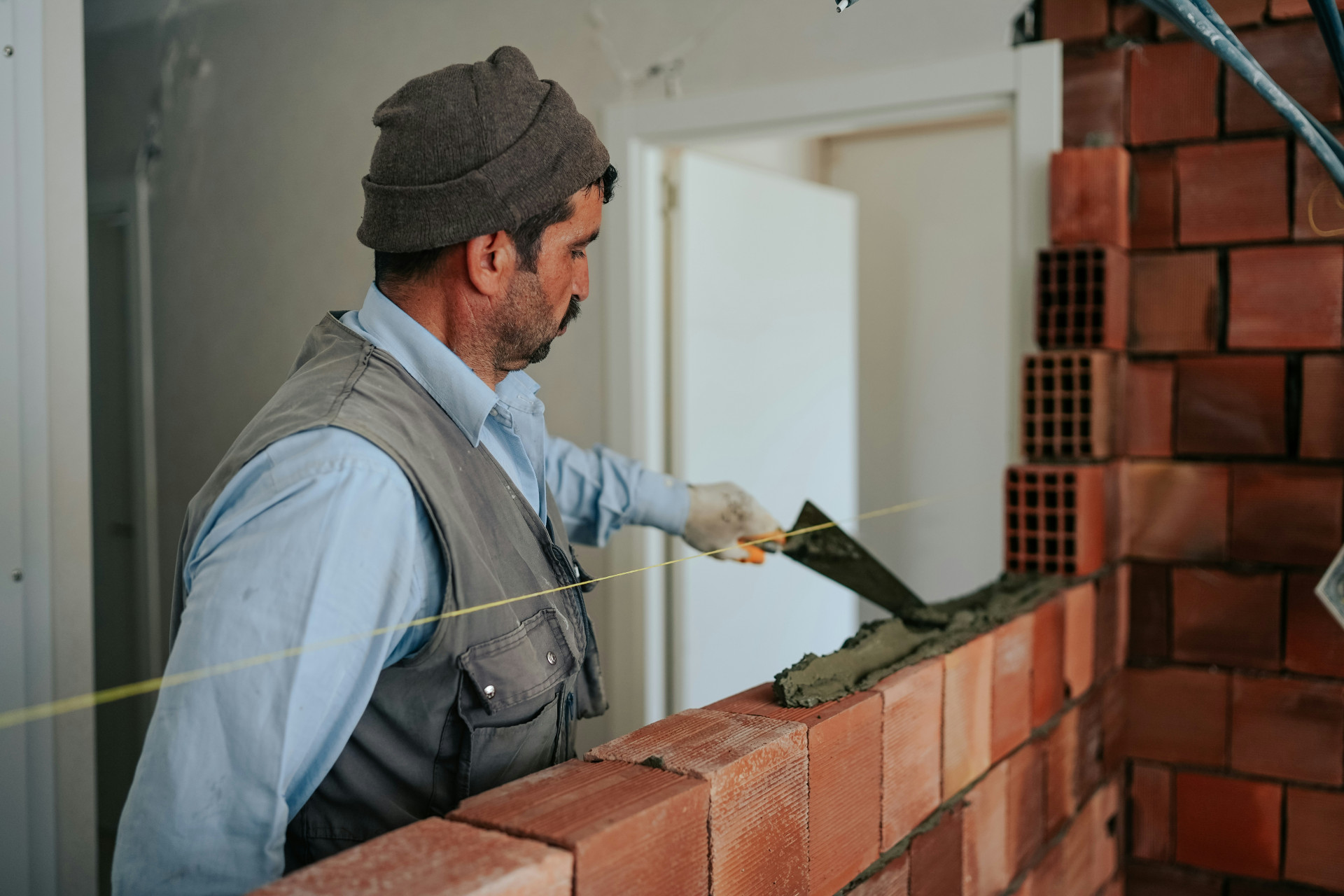 Andra arbetar med skarpa, exakta hörn i tegel eller betong, där fogarna är dragna i plan och hörnet framstår som en ren linje. Här är det hantverket som bär estetiken: noggranna snitt, rätt val av bruk och omsorgsfullt utförande.